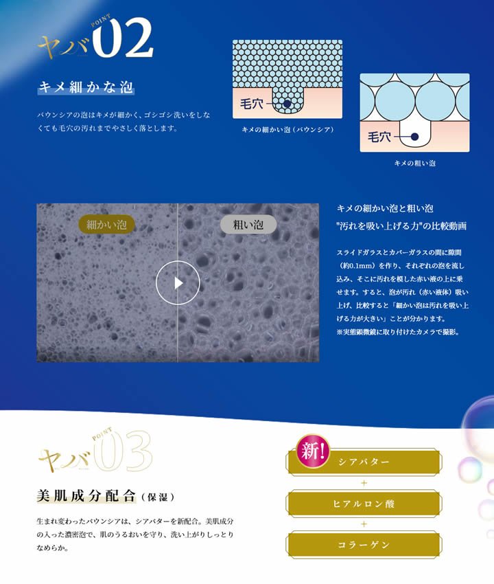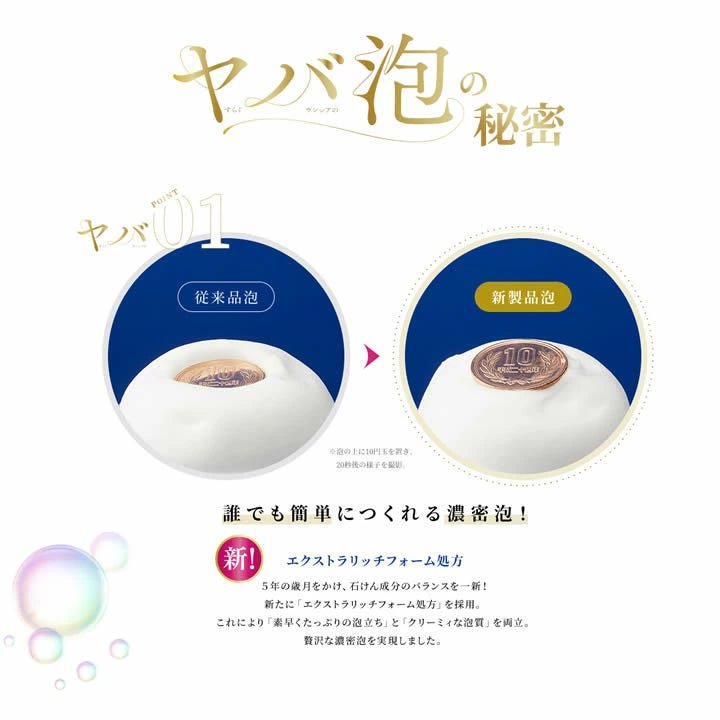 with the new extra rich foam formula, the fine foam cushion does not put a burden on the skin and is moist and smooth after washing.
