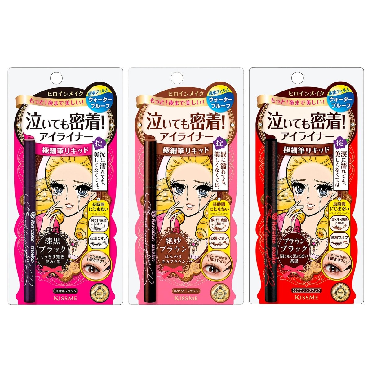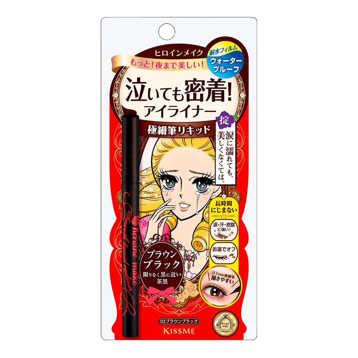 Featuring a fine brush tip for precise eye contouring, this eyeliner pen offers a soft, smooth application with long-lasting wear. Ideal for all weather conditions, it stays put rain or shine without smudging. Infused with Kiss Me Heroine extract, it gently moisturizes and cares for the delicate eye area without irritation. Compact and easy to carry, it's perfect for on-the-go touch-ups.